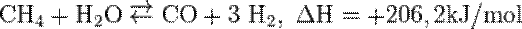 (Methan + Wasserdampf → Kohlenstoffmonoxid + Wasserstoff; endotherm)